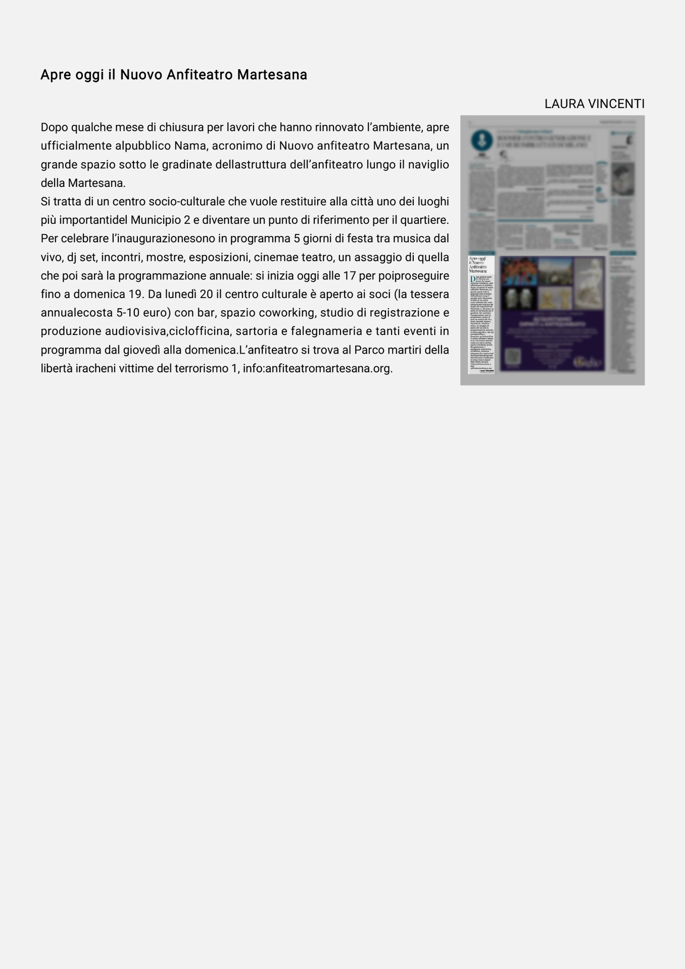 Apre al pubblico NAMA, Nuovo Anfiteatro Martesana